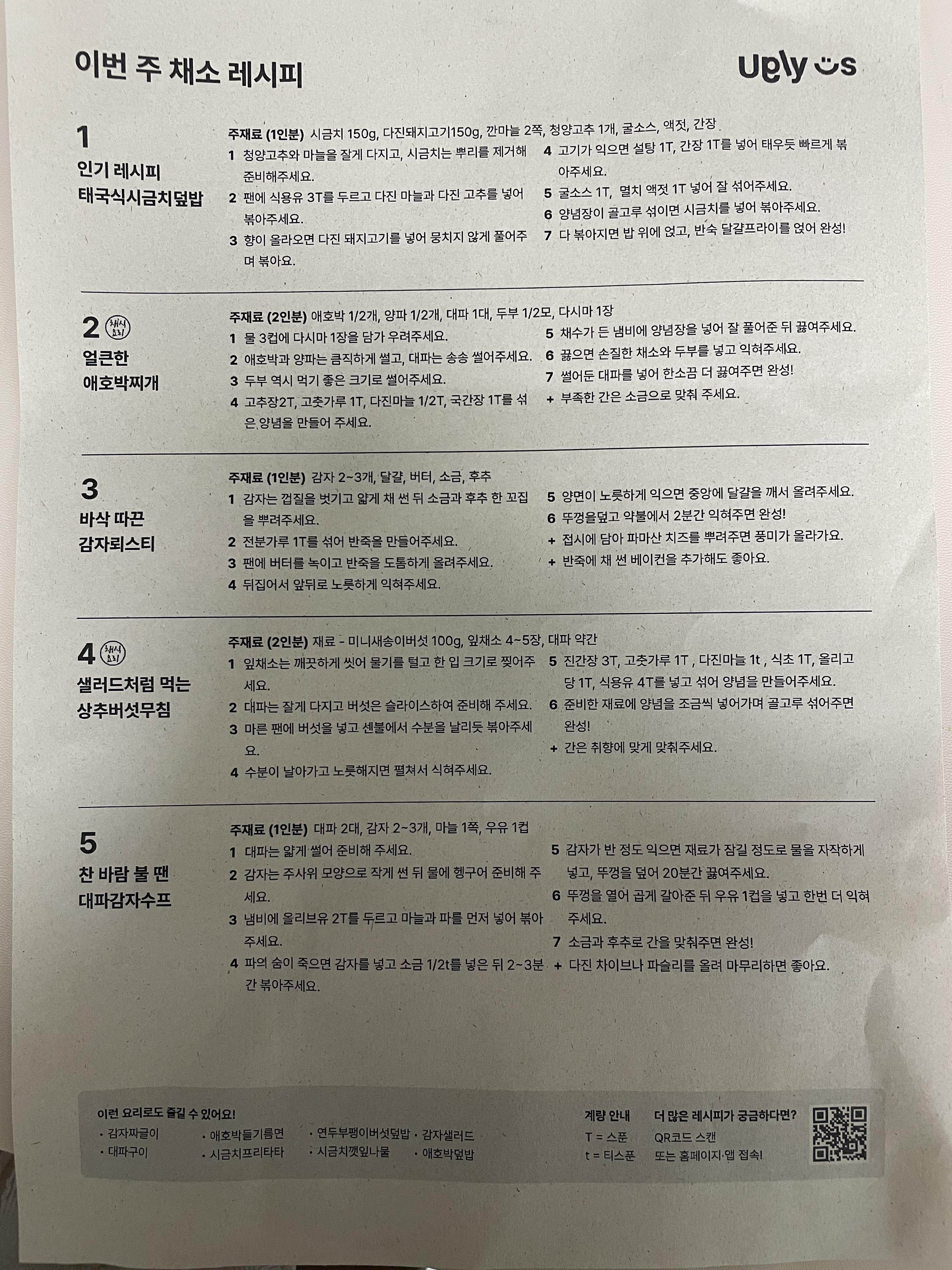 그럴때마다 같이 보내주는 레시피 참고하여 요리를 할 수 있어 대만족입니다